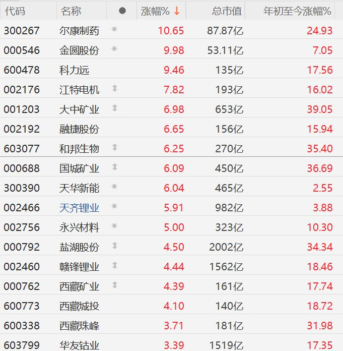 A股异动丨津巴布韦突发禁令!锂矿股高开,金圆股份涨停,永兴材料涨超5%
