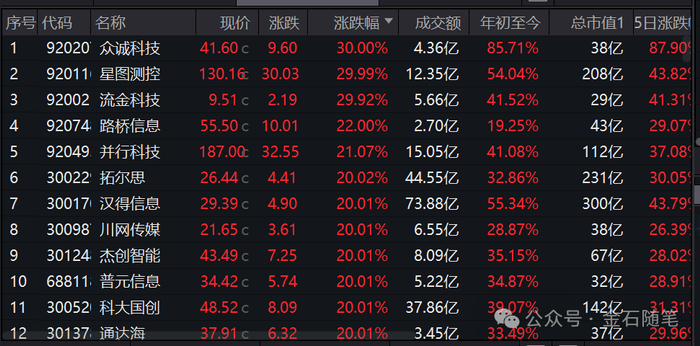 有一件事大家都在谈,人形机器人、创新药、CPO都有十倍股,商业航天还没有,所以还能涨。金石杂谈再同步给大家更新下商业航天最新涨幅。