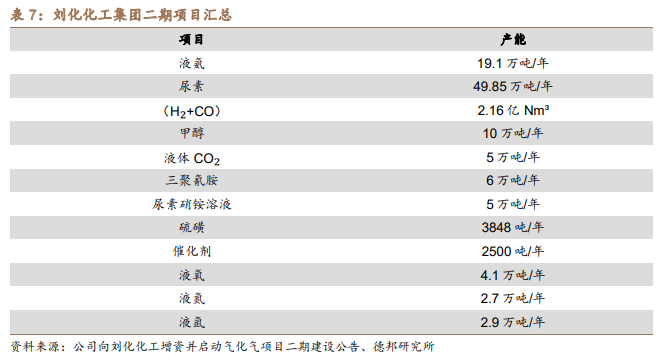 二期工程总投资20.5亿元,根据公司关于向刘化化工增资并启动气化气项目二期建设公告披露,年均税后利润预计可达 3.2 亿元,内部收益率19.01%(税后),据公司在投资者互动平台的回复,根据可研测算,刘化化工一期二期共设计耗煤 170 万吨左右。