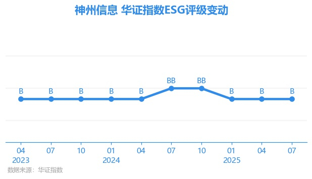 日前,华证指数公布了新一期(2025年7月31日)的ESG评级结果,神州信息(000555.SZ)获得B评级(华证指数评级为C起至AAA九档,C为最低档,AAA为其最高一级评级/AA为其第二档),上一期(2025年4月30日)ESG评级为B。本期ESG评级在143家信息技术服务行业A股上市公司中排名第96(上一期排名第116)。