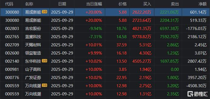 龙虎榜 | 超8亿资金抢筹领益智造,T王出逃!山东帮强封万向钱潮