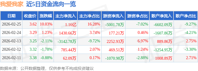 证券之星消息,我爱我家2月25日涨停收盘,收盘价3.62元。该股于10点16分涨停,未打开涨停,截止收盘封单资金为8297.11万元,占其流通市值1.02%。