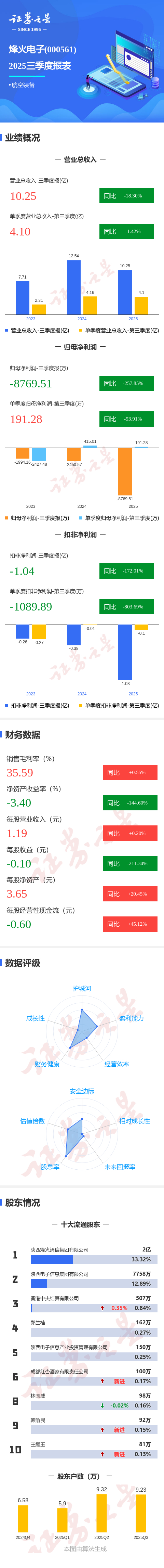 图解烽火电子三季报:第三季度单季净利润同比下降53.91%