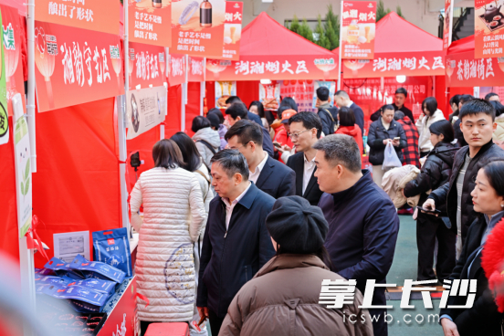 活动拓展消费空间,现场设置年货集市及多个特色展区,集中展示湖湘精品茗茶、特色食品、非遗手工艺品等。现场苗绣、蜡染、银饰等非遗手工艺品展示,让市民近距离感受传统技艺的传承美丽。现场同时设立海外特色年货专区,引进南非红酒、肯尼亚紫茶、日韩美妆等“丝路电商”伙伴国商品,兼顾本土与国际好物。此外,省内高校大学生创客携自主研发的产品参与活动,以青春创意为传统年味注入鲜活的时代气息。城步、龙山驻村工作队也带来当地特色产品,以产销对接助力乡村振兴。
