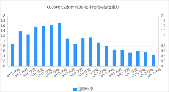 连续亏损,家底已经被掏空。最近几年,海南海药的资产负债率近乎直线上升,直逼80%。
