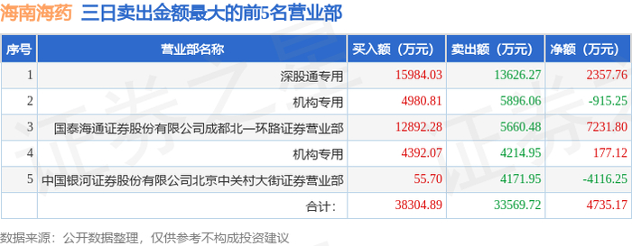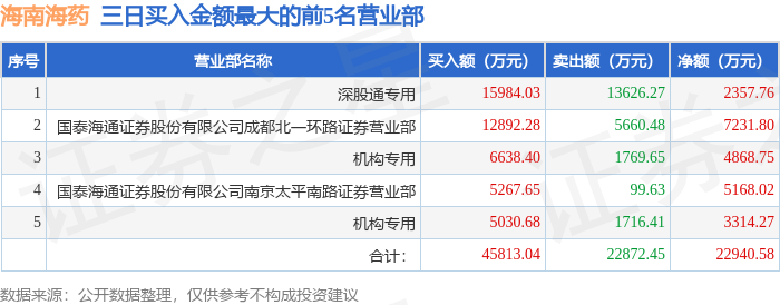 11月21日海南海药(000566)龙虎榜数据:游资作手新一、北京中关村上榜