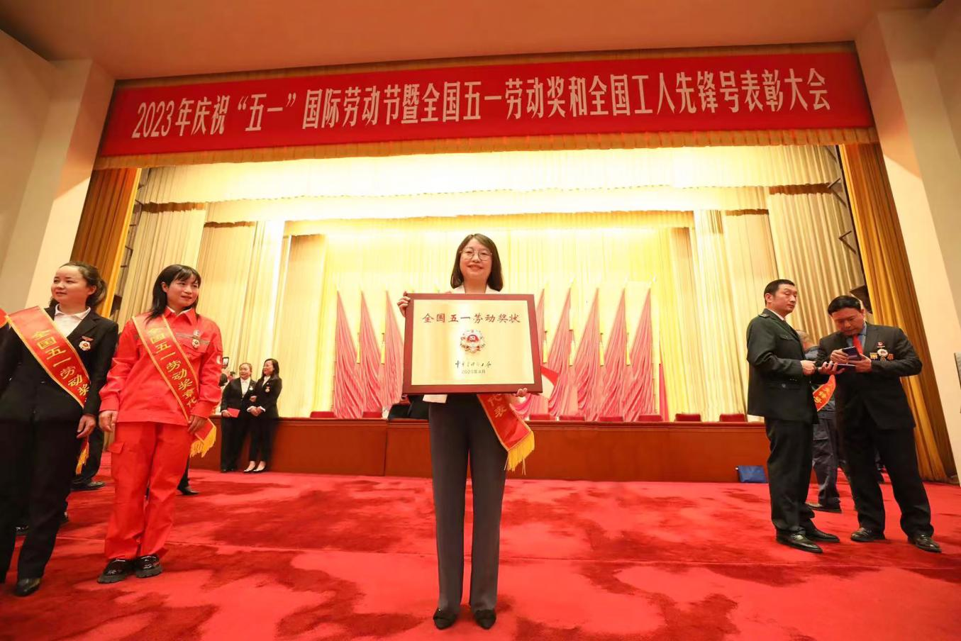 泸州老窖股份有限公司副总经理、工会主席熊娉婷在北京人民大会堂参加2023年庆祝“五一”国际劳动节暨全国五一劳动奖和全国工人先锋号表彰大会