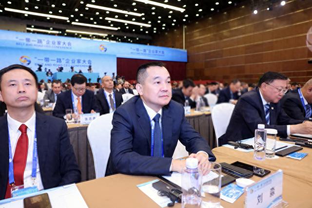 刘淼(中)参加10月17日“一带一路”企业家大会
