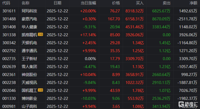 龙虎榜 | 海马汽车吸金超2.6亿,精智达遭T王近1.3亿减持