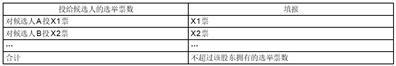 表二、累积投票制下投给候选人的选举票数填报一览表