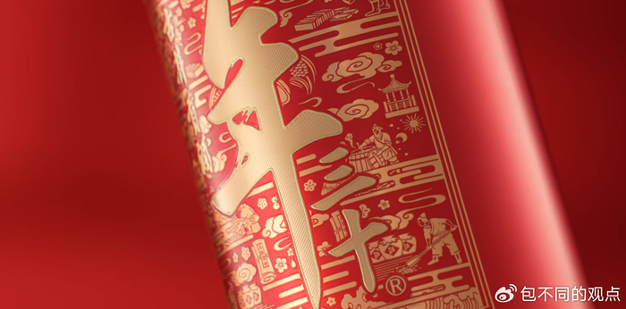火红的灯笼、噼里啪啦的鞭炮、鼓鼓囊囊的红包、沉甸甸的元宝,这些图案透着浓浓的年味,喝下去的,是满满的福气与顺遂。