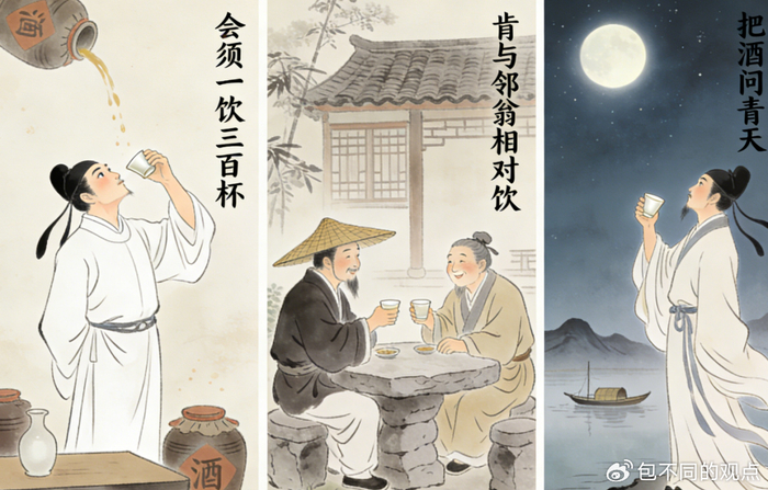 李白“会须一饮三百杯”的豪迈,杜甫“肯与邻翁相对饮”的闲适,苏轼“把酒问青天”的旷达,酒在文人墨客的笔下,是灵感的催化剂,是情感的寄托。