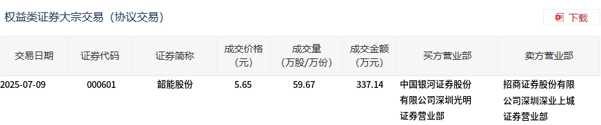 韶能股份今日大宗交易折价成交59.67万股,成交额337.14万元
