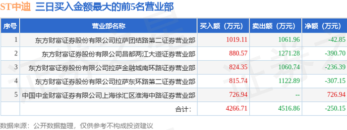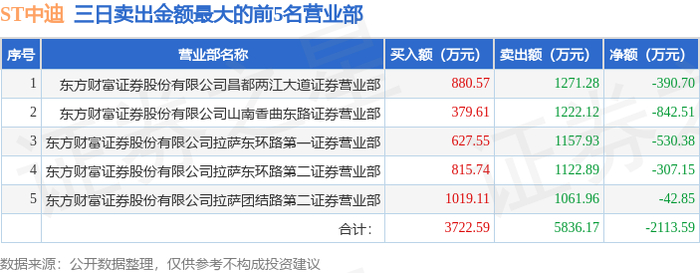 12月9日ST中迪(000609)龙虎榜数据