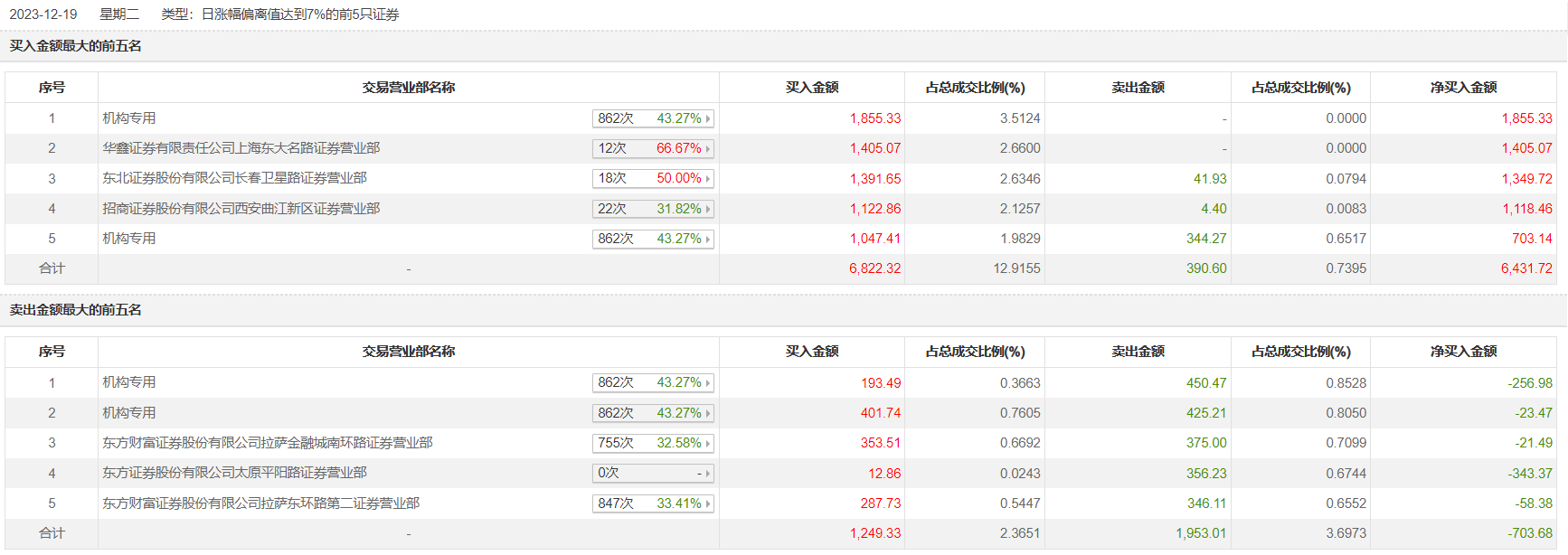 西安旅游12月19日涨停,全天换手率达15.24%,振幅达9.95%。龙虎榜数据显示,营业部席位合计净买入5728.04万元。其中,机构买入3497.98万元,卖出1219.95万元,合计净买入2278.02万元。此外,华鑫证券上海东大名路证券营业部、东北证券长春卫星路证券营业部分别买入1405.07万元、1391.65万元;东方财富证券拉萨金融城南环路证券营业部、东方证券太原平阳路证券营业部分别卖出375.00万元、356.23万元。