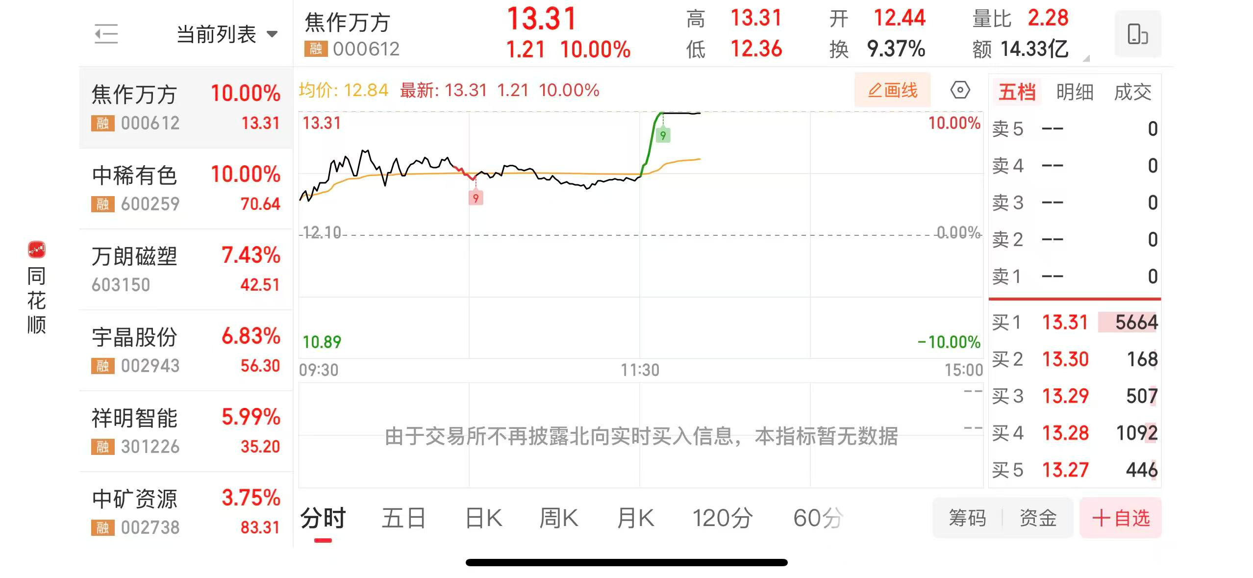 稀土永磁板块延续强势 中稀有色、焦作万方涨停