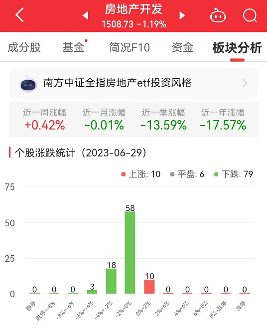 中国经济网北京6月29日讯 今日,房地产开发板块整体跌幅1.19%,其中,10只股票上涨,6只股票平盘,79只股票下跌。