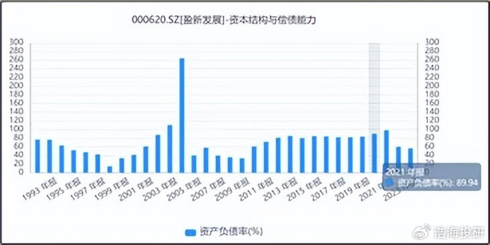 房地产下行和文旅陷危机的双重打击下,2020-2022年间公司连续三年亏损,巨额负债成为公司的沉重包袱。数据来看,2021年开始公司的资产负债率已接近90%,2022年盈新的资产负债率高达97.85%,公司面临退市的风险。