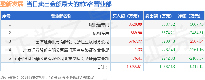 11月20日盈新发展(000620)龙虎榜数据:机构净卖出2484.31万元,北向资金净卖出5067.43万元