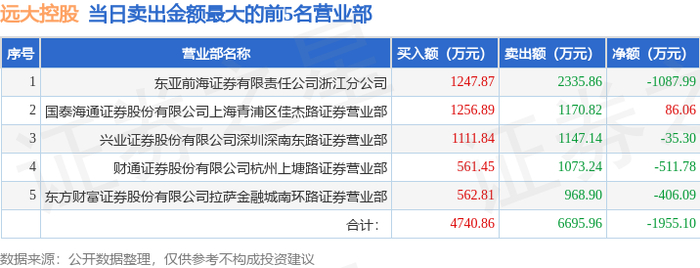 10月20日远大控股(000626)龙虎榜数据:游资佛山系、上塘路上榜