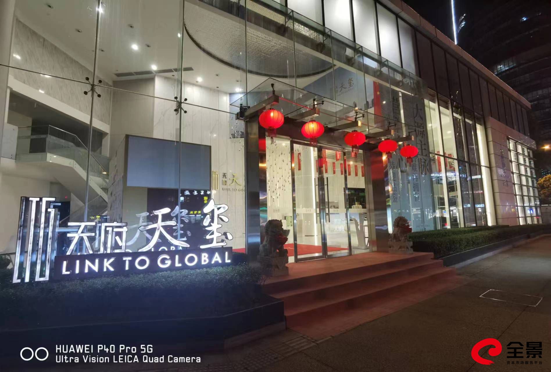 图/“天府天玺”售楼部焕新营业、灯火通明 龚璨摄据悉,上述项目“烂尾”多年,多年前开盘推售的成交平米均价仅为1万元出头,而如今该项目附近楼盘价值升值不菲,故本次复售的市场热度颇高。