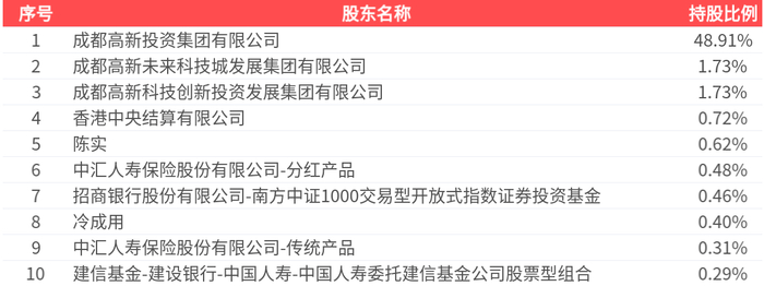 公司股东户数为5.90万户,前十大股东持股数量为1.96亿股,占总股本比例为55.66%,前十大股东持股情况如下: