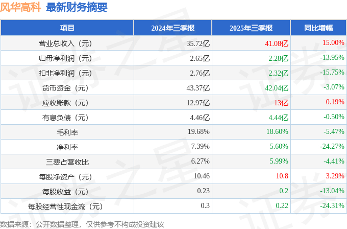 风华高科(000636)2025年三季报简析:增收不增利,公司应收账款体量较大
