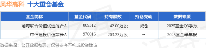 持有风华高科最多的基金为前海联合价值优选混合A,目前规模为0.79亿元,最新净值1.1289(10月29日),较上一交易日上涨1.18%,近一年下跌3.27%。该基金现任基金经理为张永任。
