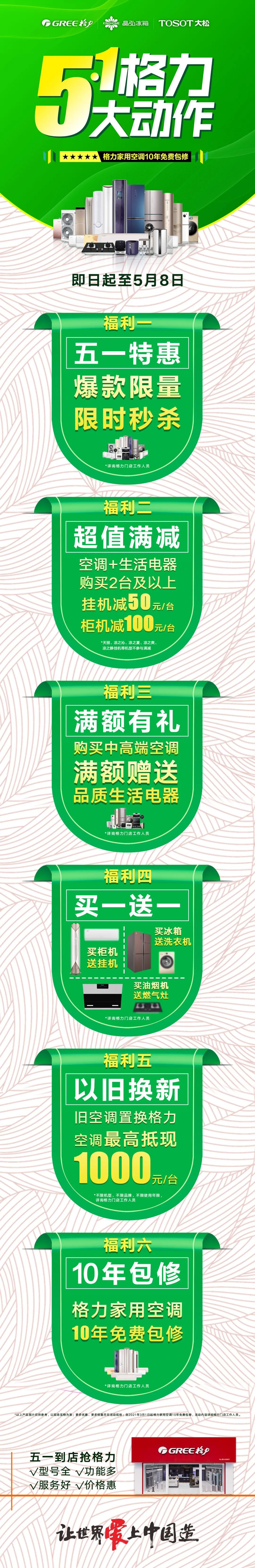 原标题:买柜机送挂机!格力五一大动作!全省门店火爆开启!