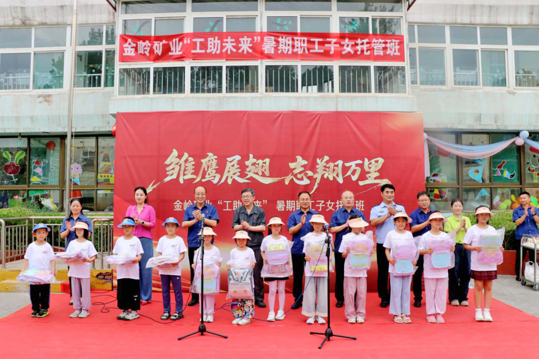 为了解决职工的后顾之忧,近日,山钢集团金岭矿业第二届“工助未来”暑期托管班正式开班,本次托管班精心设置了口才、书法、美术、专注力培训等一系列丰富多彩的课程。开班仪式现场,每位孩子都发放了内含精品书包、文具套装、定制T恤衫、午休垫的“开学礼包”,同时也为孩子们精心准备了印有“雏鹰展翅 志翔万里”的大蛋糕。