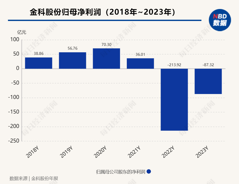 年报显示,2023年金科股份结算面积约870万平方米,同比增长约32%;营业收入632.38亿元,同比增长约15.27%;净利润为-84.30亿元,同比大幅减亏;归属于上市公司股东的净利润为-87.32亿元,2022年同期为-213.92亿元。