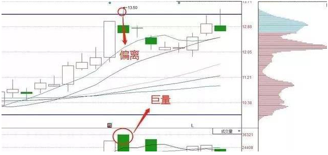 但是加上偏离(股价偏离均线远)和巨量
