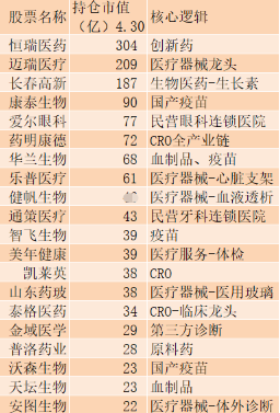 公募基金持仓医药股市值前20名