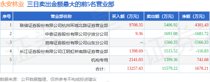11月20日永安林业(000663)龙虎榜数据:游资章盟主上榜
