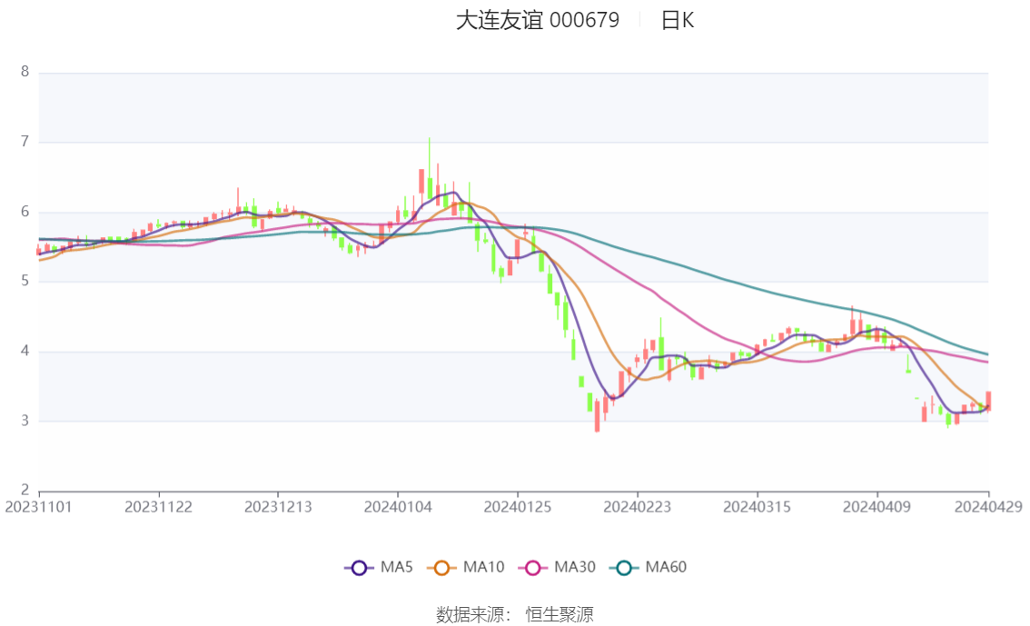 中证智能财讯 大连友谊(000679)4月30日披露2024年一季报。2024年第一季度,公司实现营业总收入3899.38万元,同比下降6.06%;归母净利润亏损1263.91万元,上年同期亏损880.43万元;扣非净利润亏损772.77万元,上年同期亏损881.19万元;经营活动产生的现金流量净额为-318.93万元,上年同期为468.02万元;报告期内,大连友谊基本每股收益为-0.035元,加权平均净资产收益率为-3.88%。