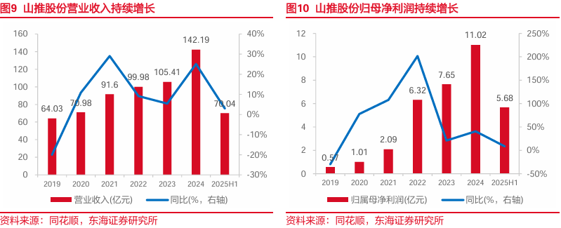 业绩实现持续增长。公司受国内工程机械行业波动影响较小,营业收入与利润持续增长。2019-2024年公司营业收入持续增长,实现复合增长达17.30%;其中,2024年公司实现营业收入142.19亿元,同比增长25.12%;2024年公司归母净利润达11.02亿元,同比增长40.72%,主要经营指标水平创新高。截止2025年上半年,公司归母净利润达5.68亿元,同比增长达8.78%,保持持续增长。