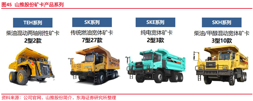 公司正全力拓展矿卡产品版图。山推凭借与山东重工的战略协同,成功掌控了发动机、变速箱及车桥等关键总成技术。公司产品谱系目前已完善覆盖70-220吨全区间,并囊括燃油、混动与纯电多种动力形式。目前,公司多款产品在市场验证中表现卓越:SE1500矿挖已稳定运行超4,000小时,SE2000矿挖也顺利通过1,300小时工况考验;同时,TEH160/TEH260刚性矿卡已进入“管家式”验证阶段,自研的SK135F-G宽体车同样完成了1,700小时可靠运行。2025年6月18日,山推综合试验中心正式启用,集成了定置、负荷、坡道、牵引力等全面试验能力,为产品性能与质量符合性提供了有力保障。在此基础上,公司于2025年迈入新发展阶段,重磅发布了以TEH260刚性矿卡为代表的大型矿山产品,进一步强化了在矿山领域的战略布局与品牌影响力,展现出强劲的市场竞争力。
