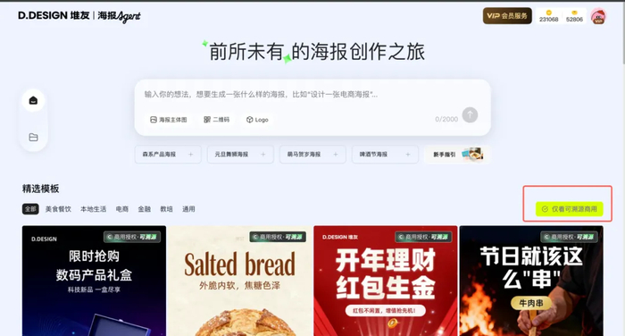 除了精准响应个性化需求,堆友海报Agent还基于视觉中国的优质资源,提供了覆盖多行业的「可溯源商用模板」。每一个模板都包含经过授权的正版素材,助你轻松激发灵感,高效开启专业级创作。