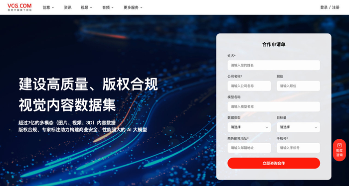 近日,视觉中国旗下vcg.com网站正式上线“数据服务”业务板块页面,系统化展示了公司在海量合规视觉数据、多模态内容处理及全链路数据服务交付的核心能力,标志着该业务已完成产品化、服务标准化建设,进入规模化推广阶段,旨在积极回应行业对高质量、版权清晰训练数据的市场需求,助力AI大模型提升训练效果与商业化合规进程。