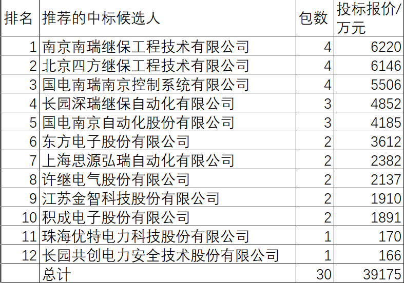 第5的国电南京自动化股份有限公司中3包4185万元,占总金额的10.7%。