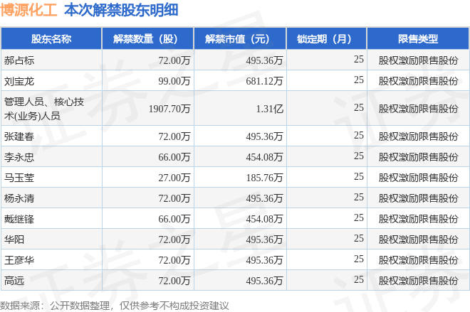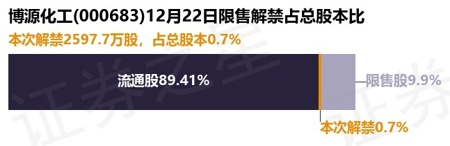 博源化工(000683)2597.7万股限售股将于12月22日解禁,占总股本0.7%