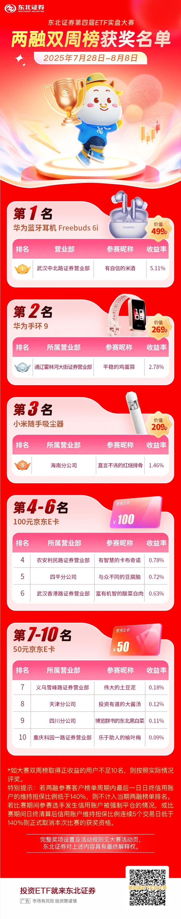 【东北证券】第四届ETF实盘大赛:两融双周榜获奖名单(2025.07.28—08.08)