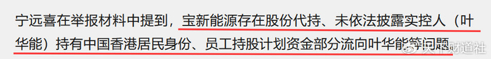实际上,揭开盖子的正是宝新能源前董事长宁远喜,其实名举报叶华能隐瞒香港身份、侵占股权激励款等问题,引起市场高度关注。
