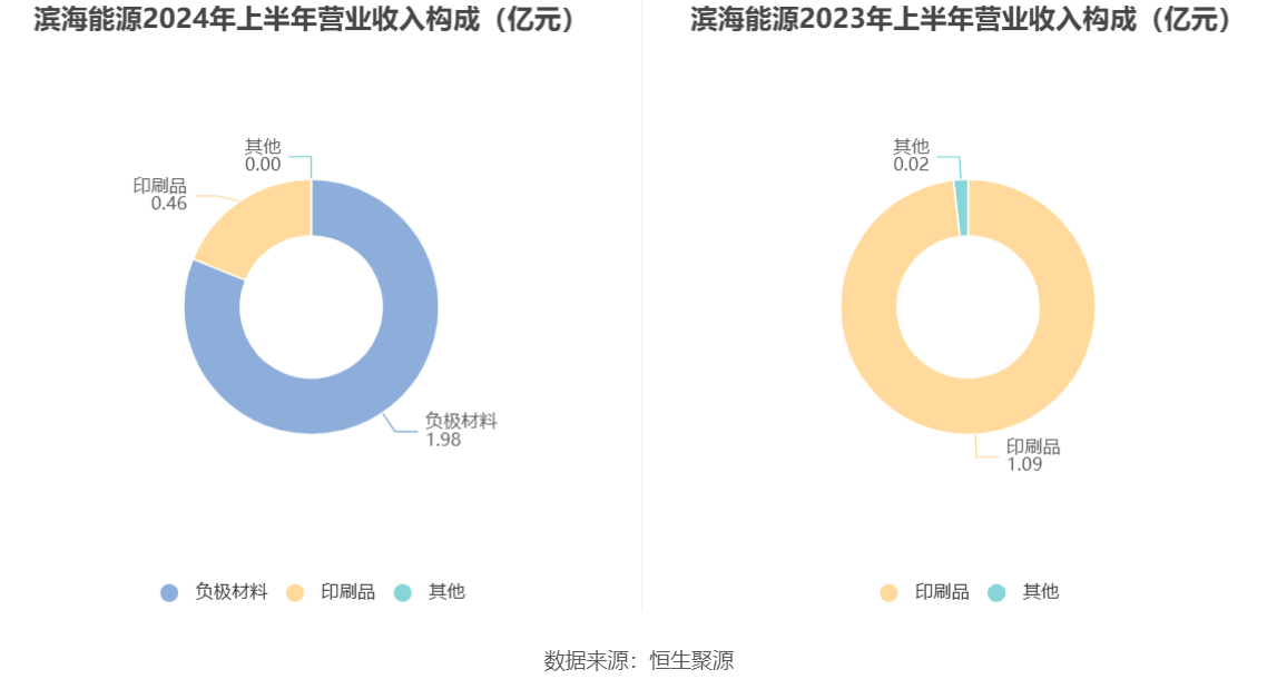 分产品来看,2024年上半年公司主营业务中,负极材料收入1.98亿元,占营业收入的80.97%;印刷品收入0.46亿元,同比下降57.22%,占营业收入的19.00%。