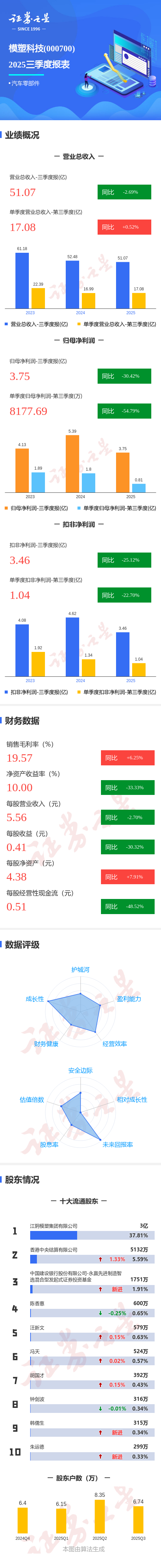 图解模塑科技三季报:第三季度单季净利润同比下降54.79%