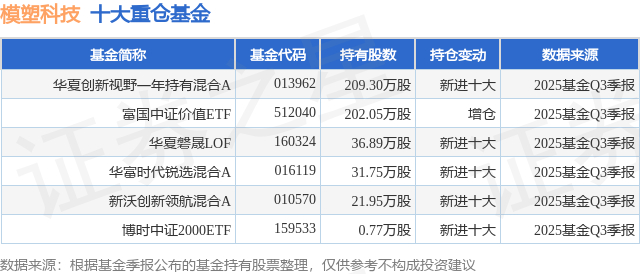 重仓模塑科技的公募基金请见下表: