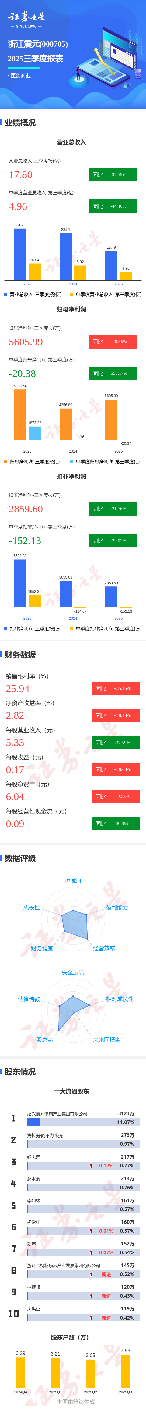 图解浙江震元三季报:第三季度单季净利润同比下降553.18%