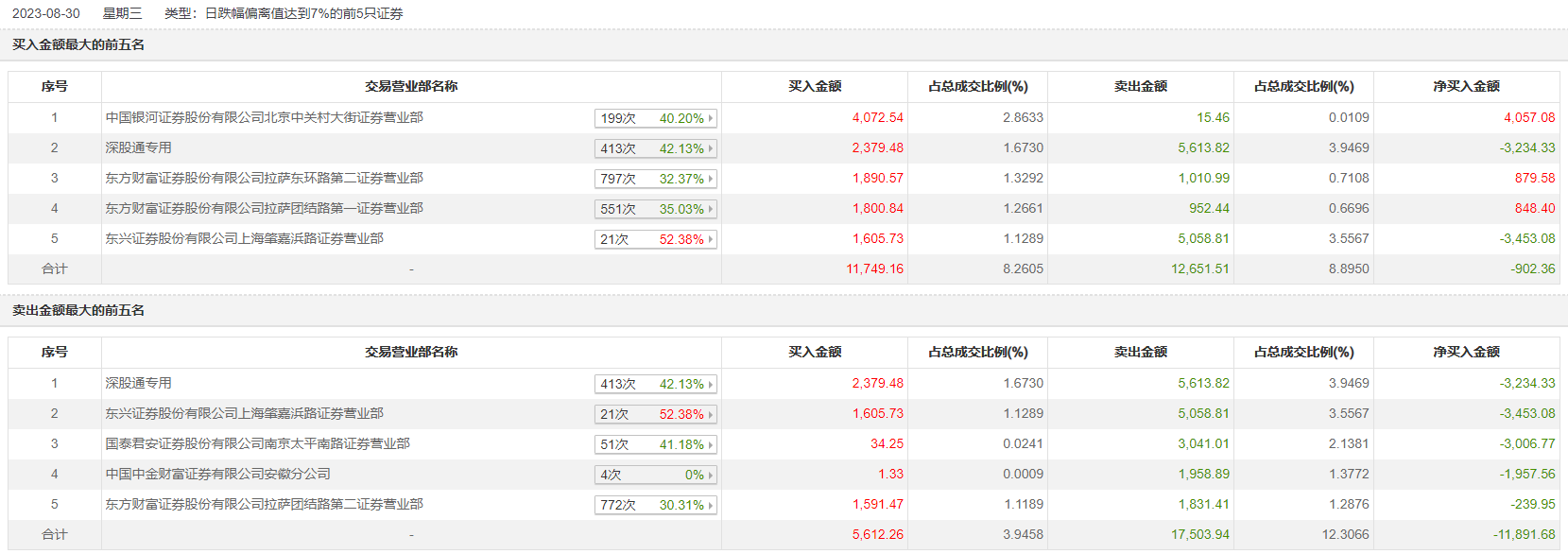 8月30日,锦龙股份今日跌停,龙虎榜数据显示,上榜营业部席位全天成交3.29亿元,占当日总成交金额比例为23.1%。其中,买入金额为1.34亿元,卖出金额为1.95亿元,合计净卖出6106.62万元。
