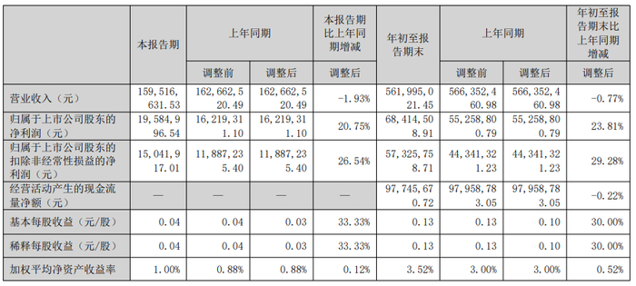 报告显示,中兴商业公司前三季度营业收入为5.62亿元,同比下降0.77%;归母净利润为6841.45万元,同比增长23.81%;扣非归母净利润为5732.58万元,同比增长29.28%;基本每股收益0.13元。