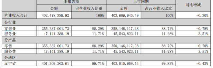 值得警惕的是,公司营收高度集中于辽宁省内,今年上半年来自该区域的收入占比仍超过99%。这也意味着,其业绩表现与区域经济及消费环境深度绑定,一旦本地市场出现波动或竞争进一步加剧,公司将缺乏跨区域的收入缓冲与风险分散能力,整体经营韧性面临严峻考验。